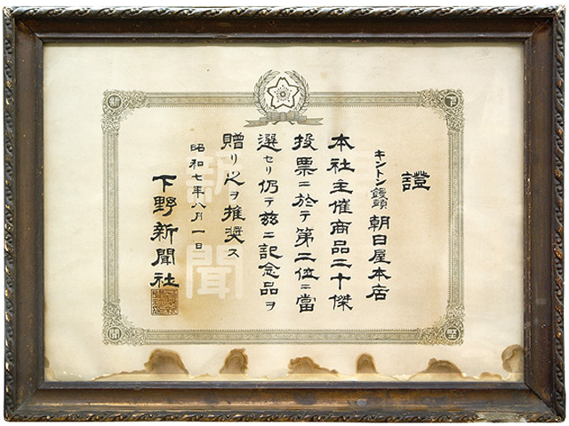 HOME こだわり 商品一覧 ご利用方法 商品に関して ご注文方法/ご注文の流れ お支払方法/返品に関して 商品のお届け/送料に関して 特定商取引法に基づく表示 個人情報の取扱いについて 会社情報 朝日屋本店 店主ご挨拶 朝日屋本店 会社概要 朝日屋本店の歴史 店舗一覧 朝日屋本店 直営店舗一覧 朝日屋本店 取扱店舗一覧 お問合わせ 朝日屋本店 会社情報 ホーム > 朝日屋本店の歴史 店主挨拶 会社概要 朝日屋の歴史 朝日屋の歴史 History of Asahiya 1897年 宇都宮市にて創業。 1899年(明治32年) 10月の宝積寺駅開設を前に駅前に移店。 1921年(大正10年) 後の主力商品となる「きんとんまんじゅう」を考案、発売する。 1932年 県内一の発行部数の下野新聞社主催「商品二十傑」投票により、第二位に選ばれる。ちなみに一位は「福助足袋」だったと言われている。 1960年 この前後より、キヨスクや百貨店など県内各地にて卸売販売を始める。 1985年 宝積寺バイパスに初めての支店を出店。 2005年 宇都宮市のベルモールに5店目となる支店を出店。 ご注文・お問合せ order/inquiry ショッピングサイトでご注文はこちら お問合せはこちら その他のご注文・お問合せ方法 お電話でご注文 028-675-0030 お電話の受付時間:8時~18時30分 ファックスでご注文 028-675-0072 ご注文用紙はこちら